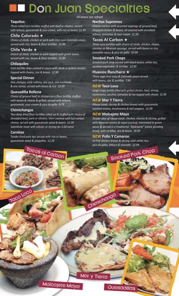 With choice of beef, chicken or pork, guacamole salad and choice of rice and beans.
